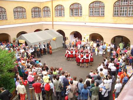 A Református Kollégium udvarán táncoló Kisbogáncs is számos