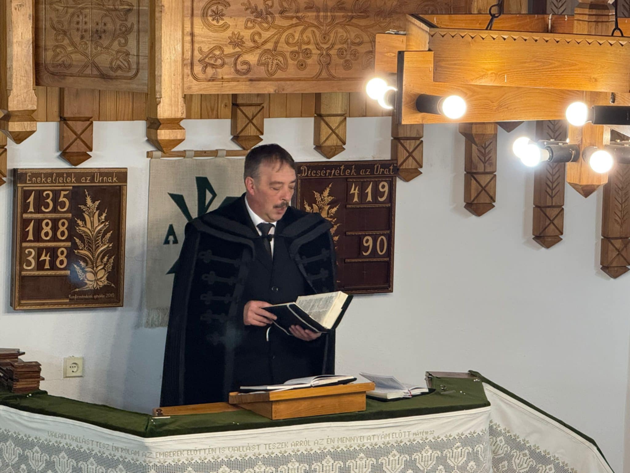 Az újonnan beiktatott lelkipásztor igei szolgálatát a Róm 9,16 alapján végezte, amelyben rámutatott, bár nagyon fontos az elhatározás, a „tégláról téglára” való lelki építkezés, valamint a család, a gyülekezet, a közösség és a jövő építése, nem feledkezhetünk meg arról, hogy a megtartatás, és az üdvösség csak a Jóisten kegyeleme és irgalmazó szeretete által adatik. Jézus Krisztus a tökéletes példa, aki megmutatta, hogy nem az emberi kínlódás, hanem az Isten iránti feltétlen engedelmesség hozhat áldást a gyülekezet életére.