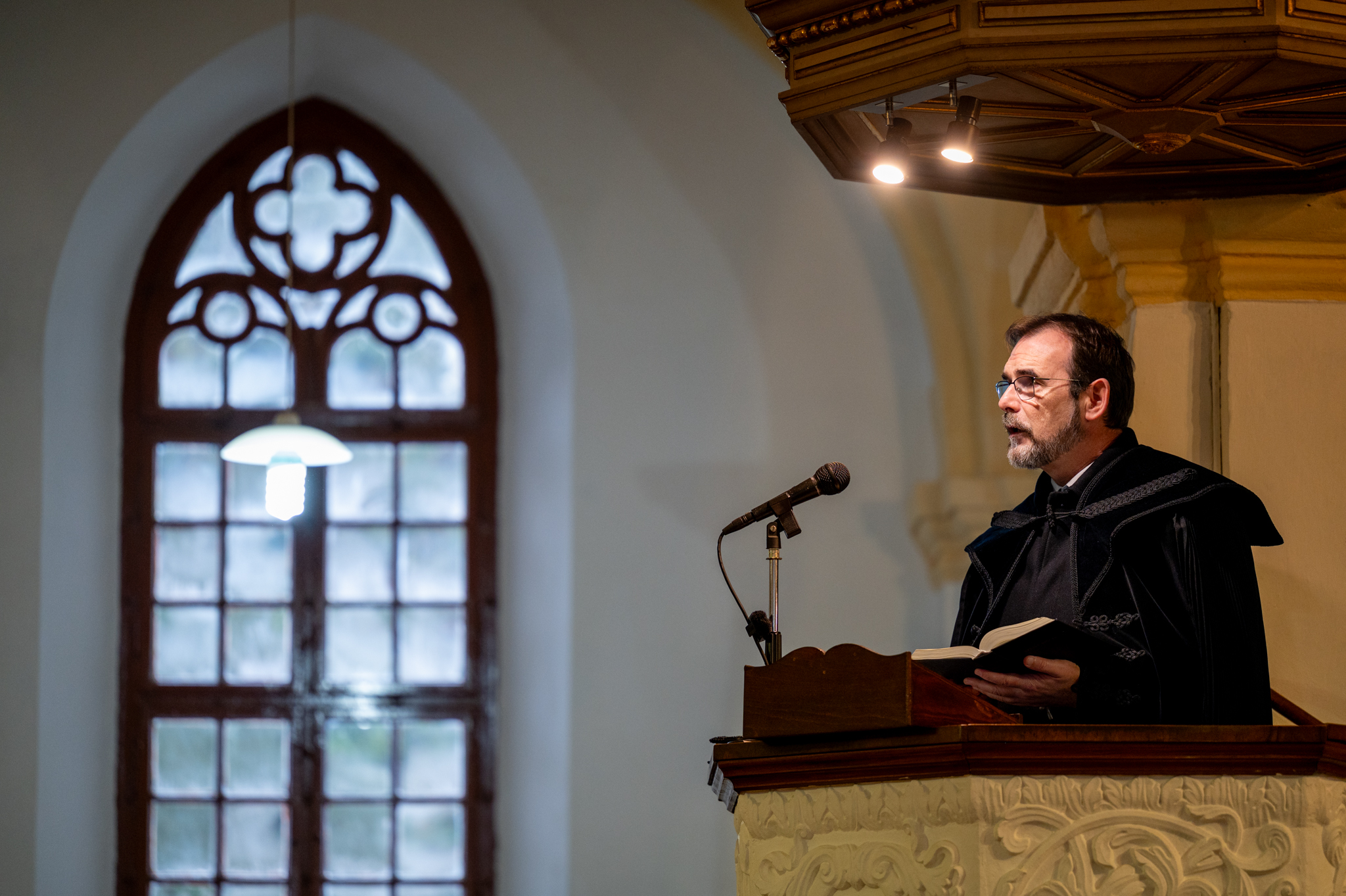 Kolumbán Vilmos József püspök az Ézs 35,4 versei alapján igehirdetésében kiemelte, a próféta szavai egy kilátástalannak tűnő időszakban hangzottak el, de a ma gyülekezetének is szólnak. Isten üzenete a prófétákon keresztül ugyanis mindig akkor jut el az emberekhez, amikor a legnagyobb szükségük van rá. Nem elég azonban meghallani a bátorító igét, meg is kell élni, és tovább is kell adni – hangsúlyozta a püspök. Ahogyan egykor a fogságban élő népnek megígérték a szabadulást, úgy Isten ma is arra buzdít, hogy ne féljünk az előttünk álló akadályoktól. „Mondjátok a remegő szívűeknek: Legyetek erősek, ne féljetek!” – idézte, hozzátéve: a „remegő szív” nem a gyengeség jele, hanem Isten bátorításának a része. Árva Bethlen Kata életét is számos ilyen, „remegő szívű” pillanat kísérte, ám a szenvedések közepette is megőrizte hitét, és mások számára is a reménység és a hit forrásává vált. Hiszen ő nem csüggedt el a nehéz időkben sem, templomot építtetett, segítette a gyülekezetek életét, de ami a legfontosabb, hitt abban az elkövetkező jóban, amit Isten megígért. „Vigasztalni csak az tud igazán, aki maga is megtapasztalta Isten vigasztalását.”