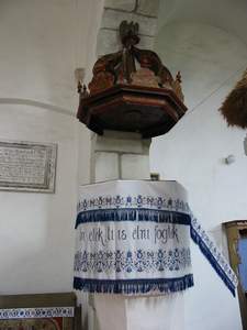 Ez esztendőben 1761-ben készíti idős Umling Lőrinc a festett kazettás mennyezetet, a festett bútorokat, az Úrasztalát, a szószékkoronát, az énekhirdetőket, valamint a a nyugati oldalon lévő festett karzatot, mely meg is örökíti a dátumot: „Prédikátor 5 rész, 1 vers ”. „1761 Umlong Lőrintz.” |