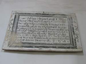 A templom udvarának bejáratánál volt egy tábla, mely most a templomban van, mely megörökíti jótevőit: „NÁHAI MLGOS GROFF LOSONTZI BÁNFI MÁRIA ASSZONY EXELLENTCÁJA SOMKEREKEN RUINÁBAN LEVŐ ISTEN HÁZA RENOVÁLÁSÁRA ÁS ÉKESZTETÉSÉRE LÉGÁLT KÖLTSÉGGEL ÉS MAGÁÉVAL RENOVÁLTATTATOTT MINDENEKET MLGOS GROFF CAMERARIUS ÉS MAROSNÉMETI IFJABB GYULAI FERENTZ ÚR Ű NGA KEDVES ÉLETE PÉRJA MLGOS GROFF SZEPESI SUSANNAASSZONY Ő NGÁVAL ADYÜTT ANNO DOMINI 1761”. |
