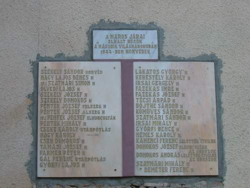 Fél évszázadot kellett várni, amíg végre a szívek mélyén rejtett titkot, a drága hősök emlékét elő lehetett venni, nyíltan szembe lehetett nézni a valósággal és méltó tisztességet lehetett adni a második világháborúban elesett 34 marosjárai honvédnak. Emléküket a református templom falára rögzített márvány emléktábla őrzi.